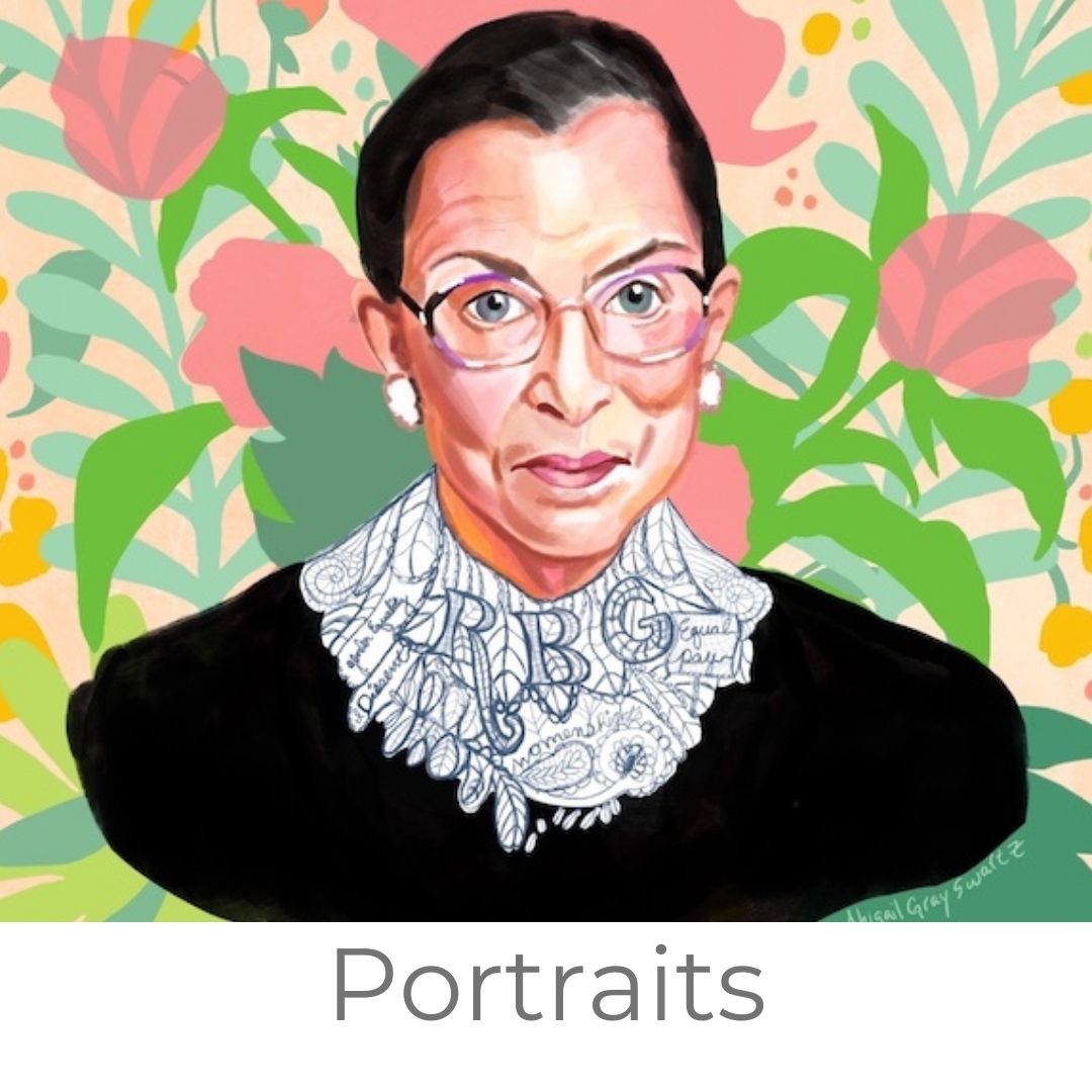 Get in touch with Abigail to inquire about your custom art project from murals, to picture books, portraits, logos, and more.
