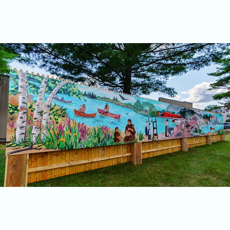 In the spring of 2021, Abigail was commissioned to create a 4 panel mural celebrating the history of Old Town up to the present day. She worked closely with the students and teachers, bringing their research to life. The artwork for this project was drawn digitally on Abigail's ipad and then printed out on 4 large 4x8 ft panels. You can see the mural at Peace Pole Park in Old Town, Maine and read more about it below.