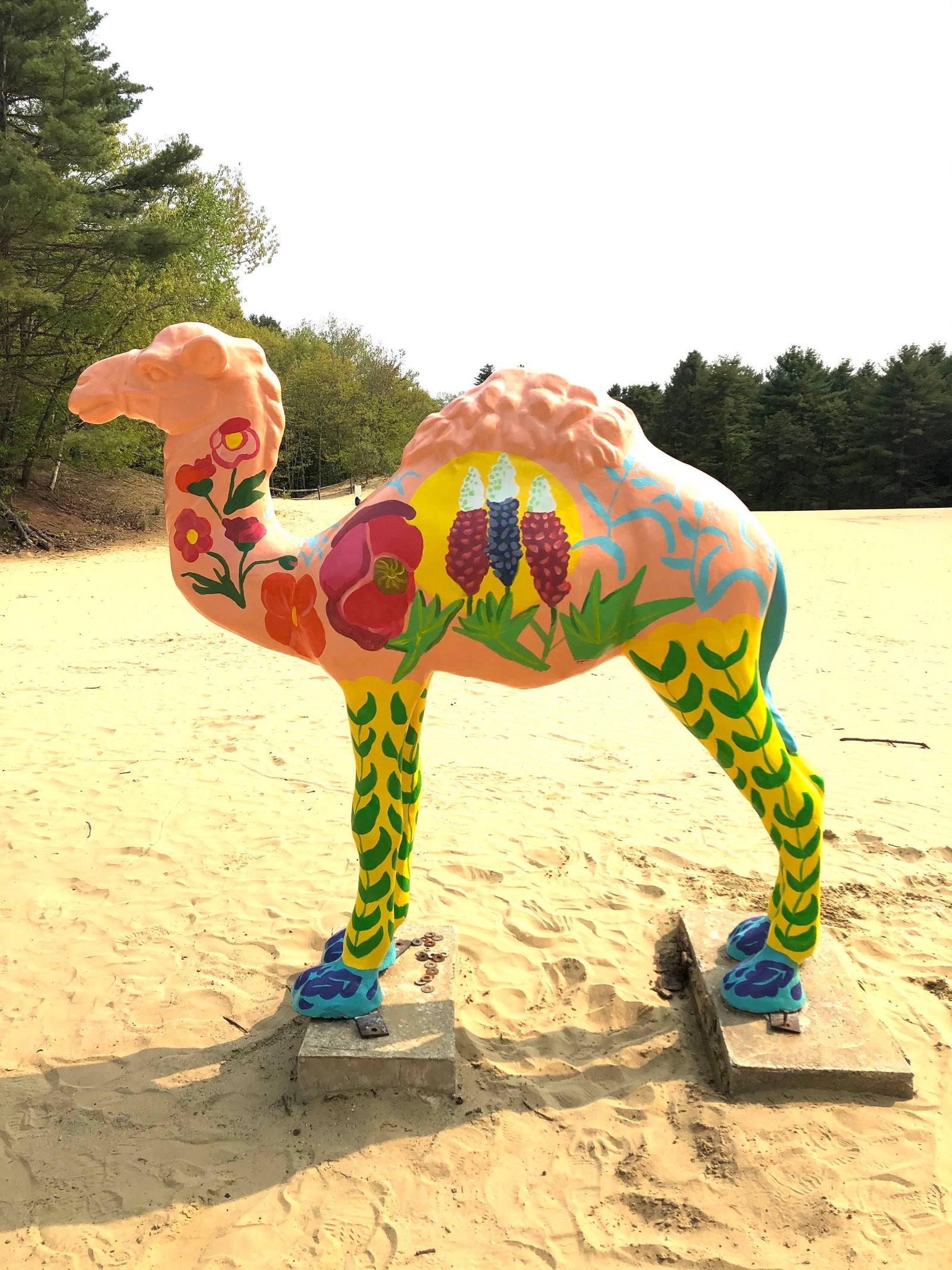 In the summer of 2019, Abigail was commissioned to paint the Camel at the Desert of Maine in Freeport. She worked closely with the clients offering three designs to choose from. This floral design with the large yellow sun celebrates native lupines while the stylized floral motifs add a modern vibrancy to this camel makeover.