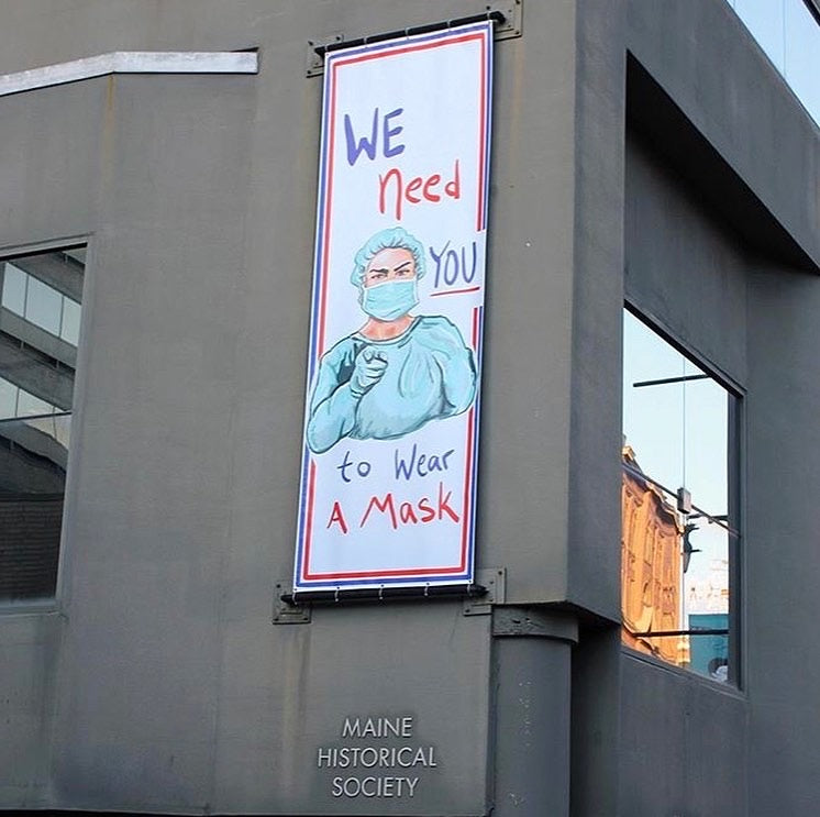 In the fall of 2020, Abigail's illustration was chose to be turned into a banner and hung in Portland, Maine as part of Creative Portland's campaign to use public art to help spread the word about being safe during the COVID19 pandemic.